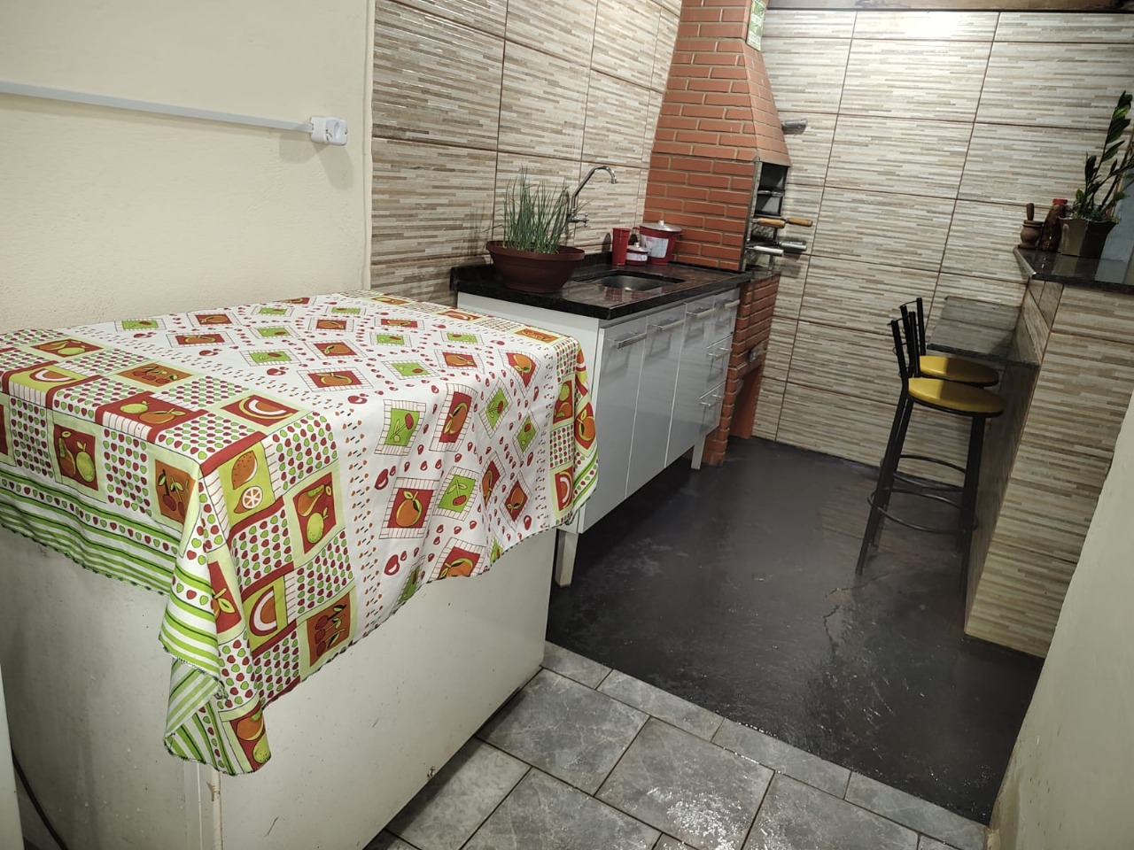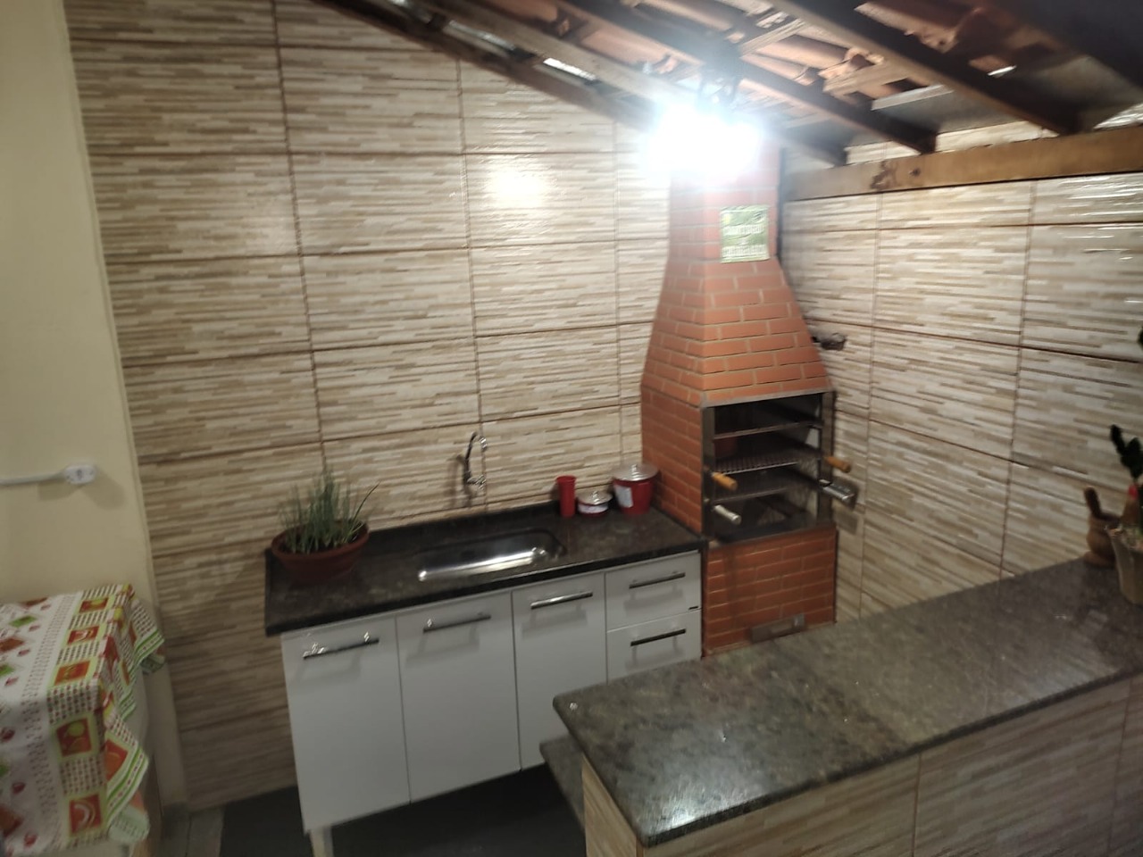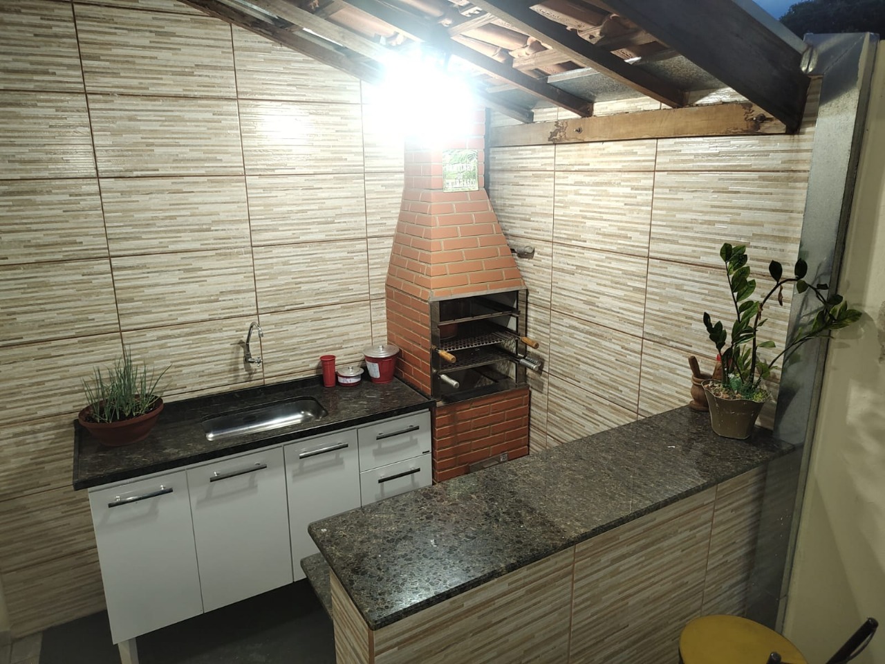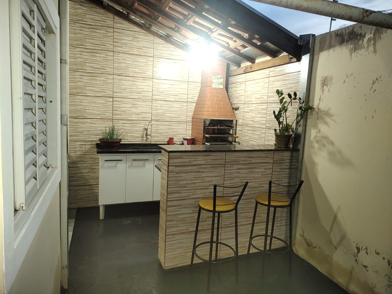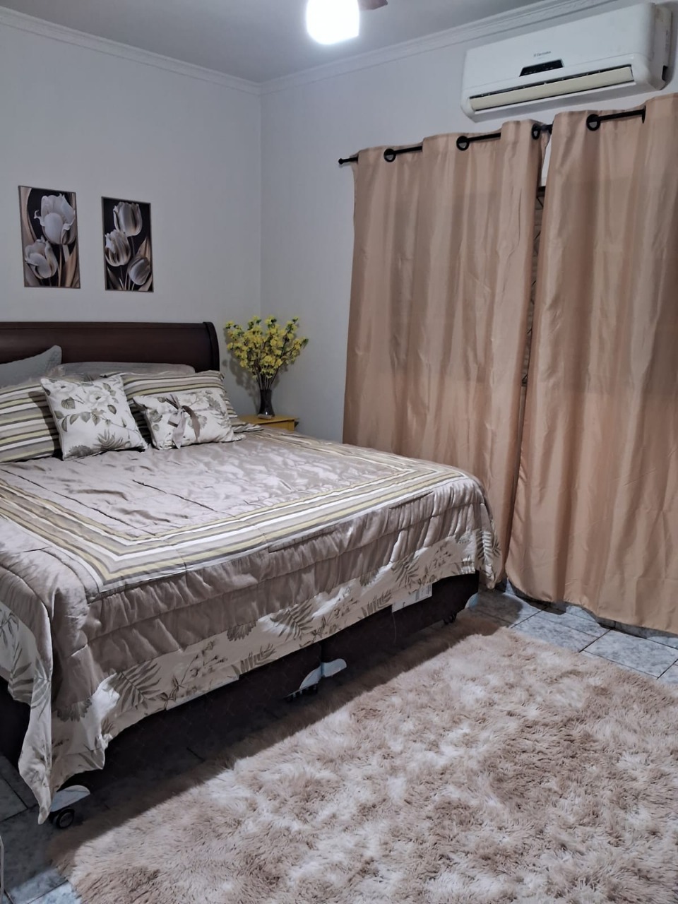 Descrição: Casa com 2 quartos com cama de casal.sendo 1 com ar condicionado e outro com ventilador. 2 Banheiros. sala.cozinha. lavanderia. Garagem para 2 carros.