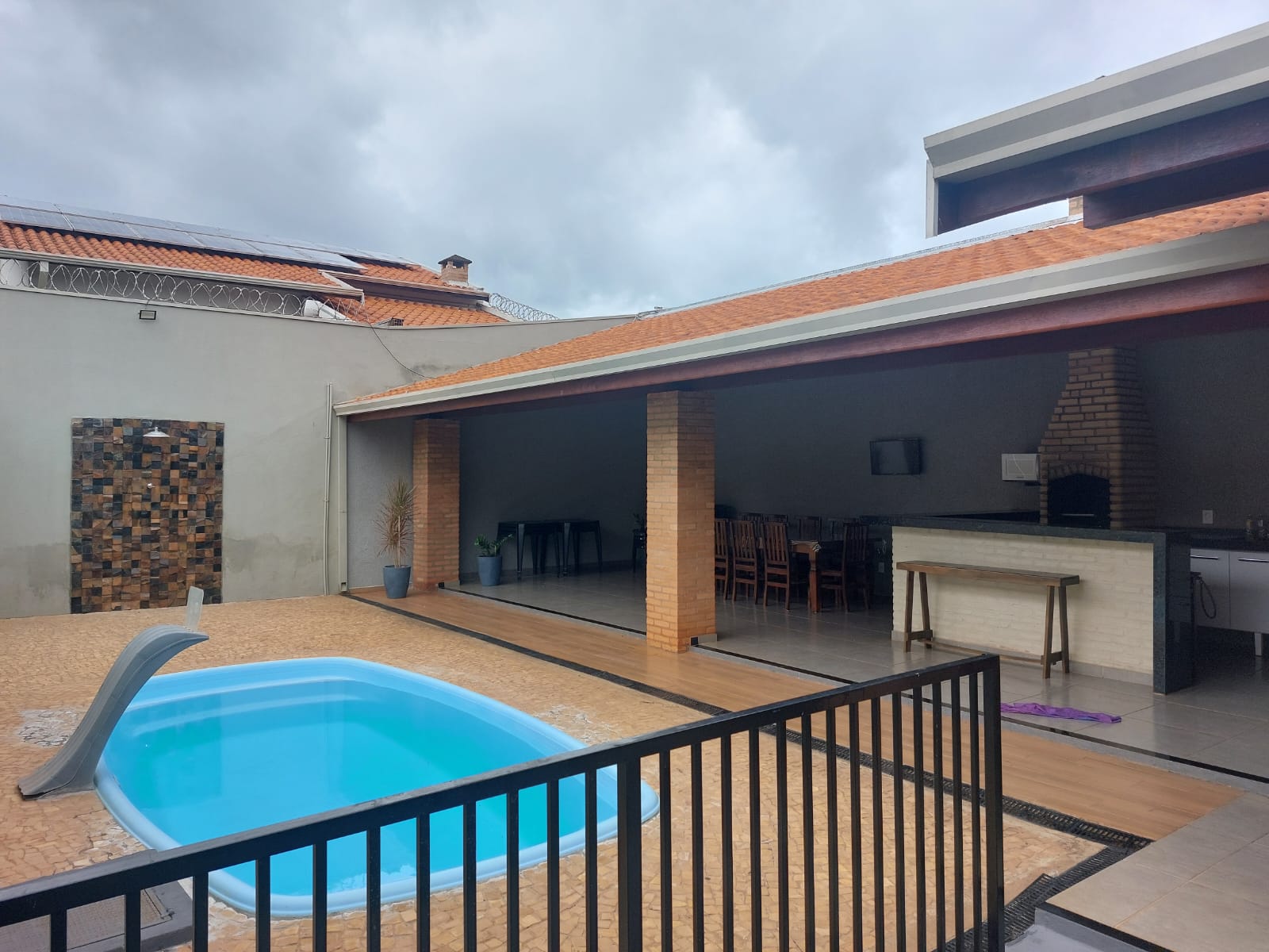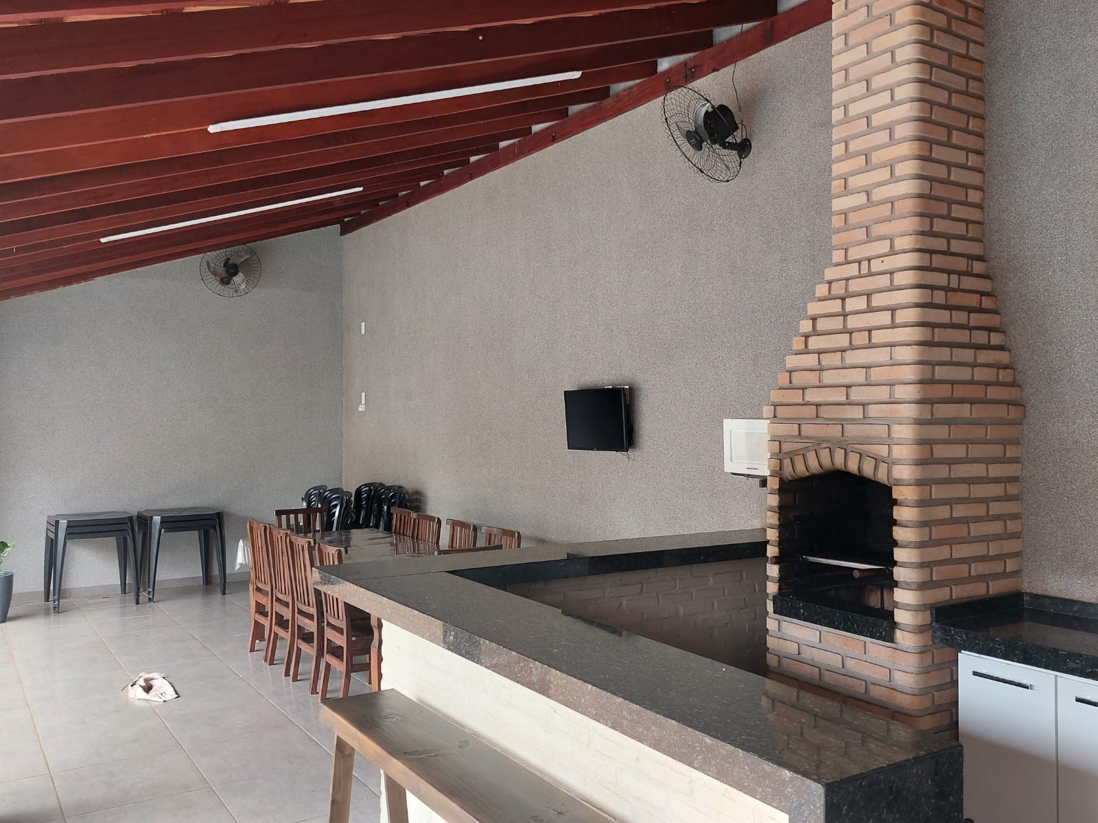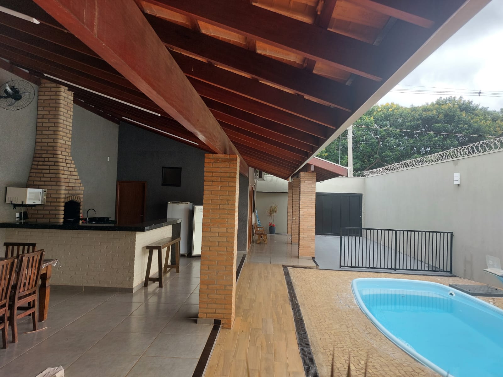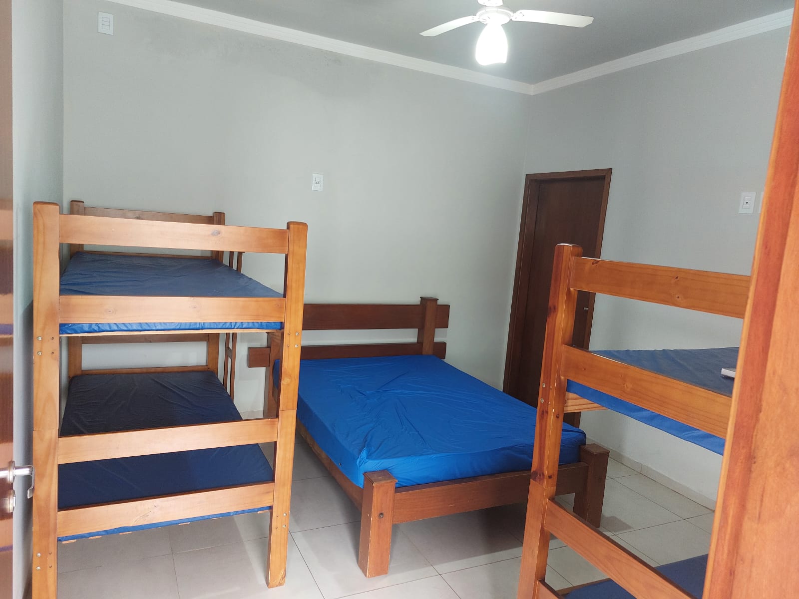 Descrição: Casa com 1 suite com 2 Beliches. 1 Cama de casal com ar condicionado e ventilador. area com churrasqueira e cozinha. Espaco para 2 carros e Piscina. proximo ao Parque do Peao.